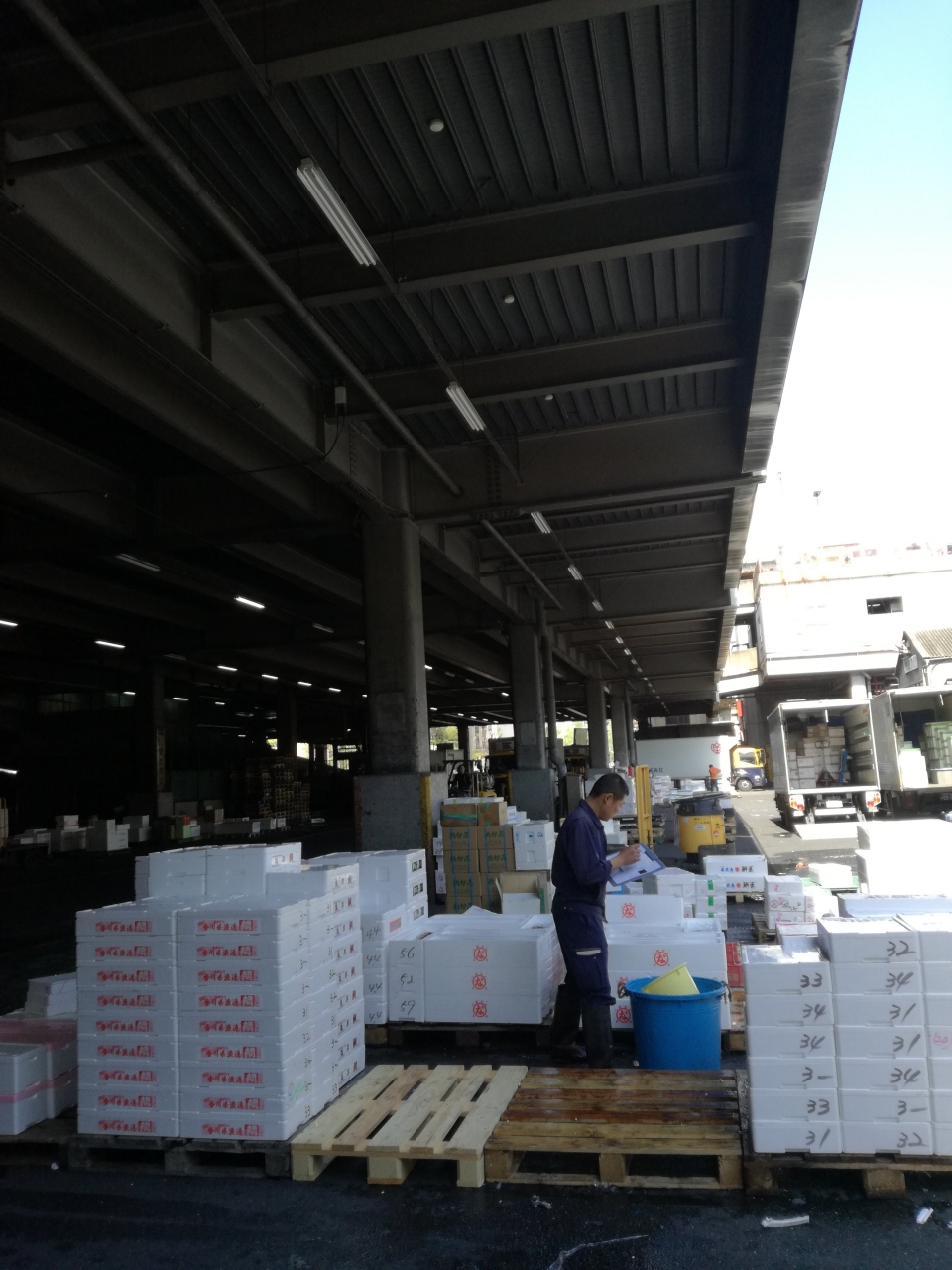 平日(月曜)の朝10時頃訪れました。観光客は少な目でほとんどが外国人でした。この日は普通に見ながら歩けましたが、土日は動けないくらい混雑するようです。入口は市場で貨物や荷物を運ぶ車が行きかっているので邪魔にならないように歩かないといけません。せりは見れなくても市場の雰囲気は味わえます。場外よりこちらの方が雰囲気もお買い得感もあるかと思います。2018年10月には移転するので市場の雰囲気を味わったり、今の場所の方が駅が近くて便利なので移転前に行った方が良いかと思います。