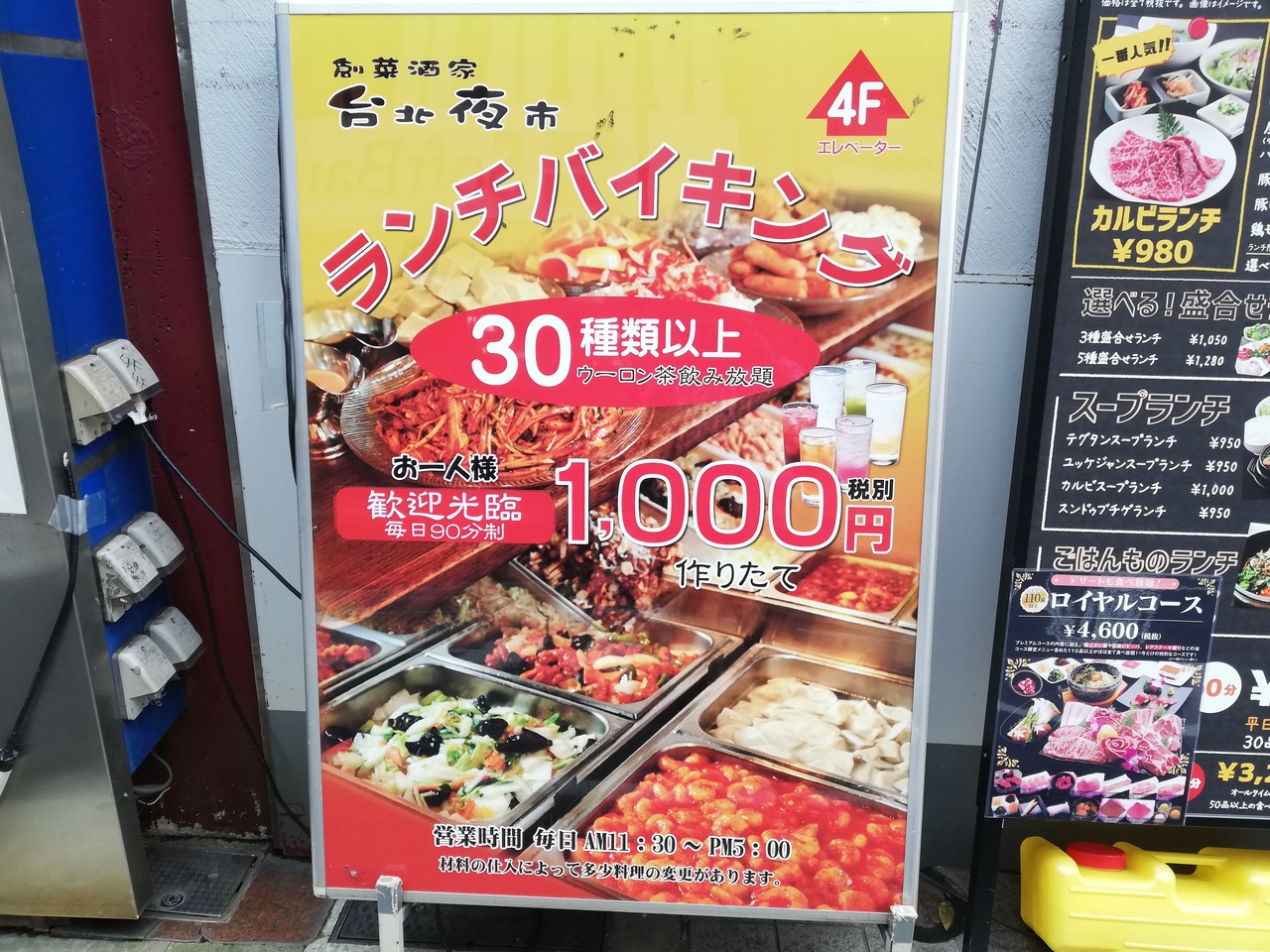 池袋東口にある台北夜市というお店で、ここでは台湾料理を1080円で90分で食べ放題になります。