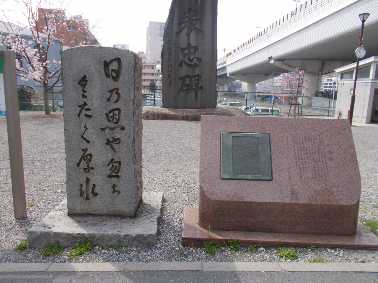 この碑は両国橋の東側のたもとに石碑として置かれています。その場所は広場になっています。その広場には大きな表忠碑があります。その碑の前の道沿いにあります。彼の句が刻まれています。この場所は吉良邸があったところから近いです。赤穂浪士としても素晴らしいですが俳界でも素晴らしい人です。時がその人物を残し石碑を残したのです。石碑からも思いが伝わってきます。