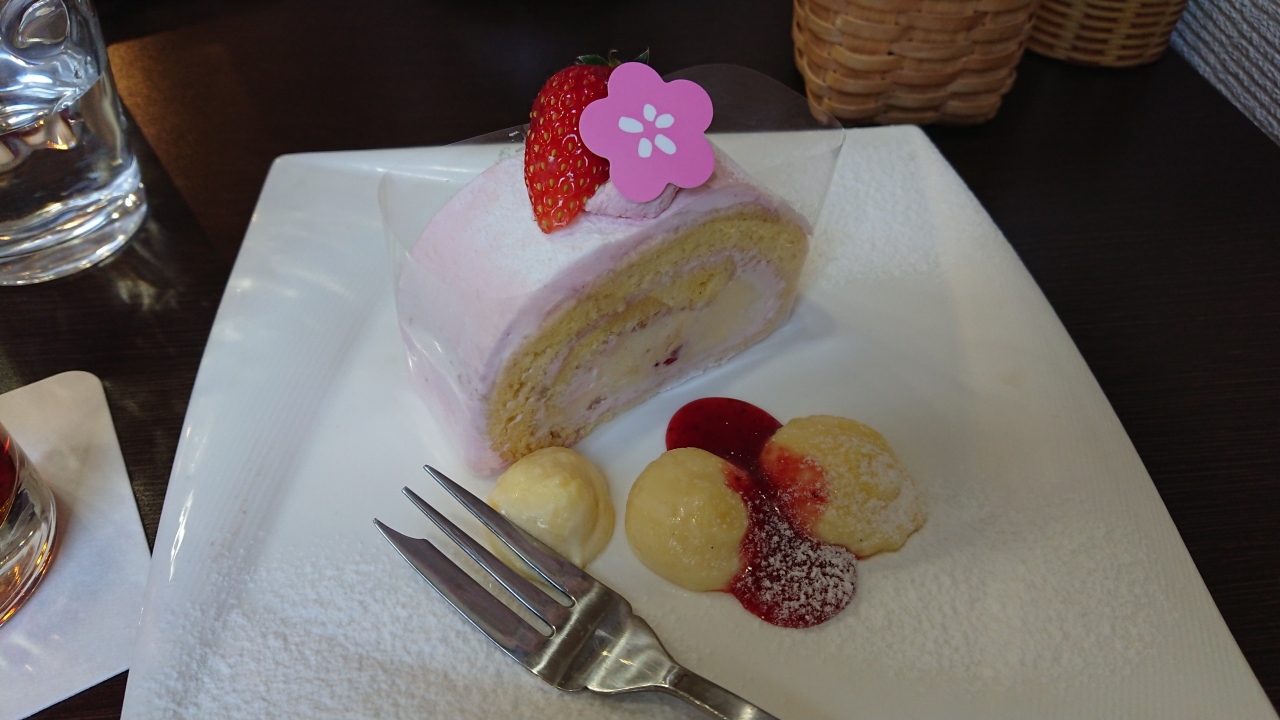 桜フルーツロールとアイスティー 790円。