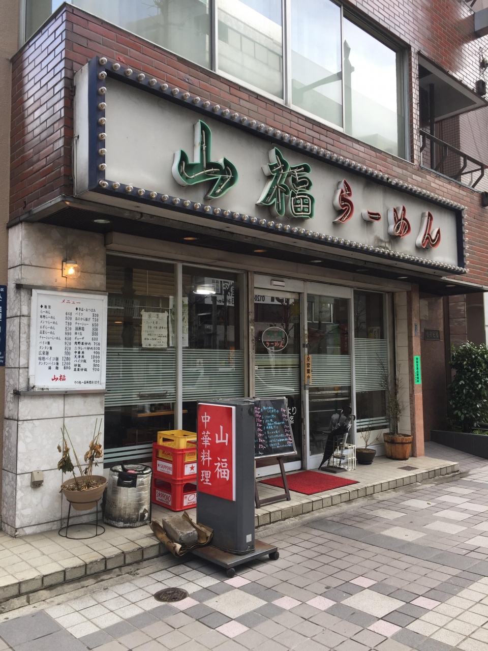 八丁堀にあります。店名にラーメンとありますが、麺類の他、炒め物なども提供していました。昼時はランチの提供があり、夜は遅くまで営業しているので、居酒屋感覚で利用しているサラリーマンが多い印象です。店構えからして、けっこう老舗の感じ。店内もどちらかというと、昔ながらのって雰囲気が漂っていて、男風情を感じるお店です。料理は全般やや濃い目の印象ですが、美味しくいただけます。