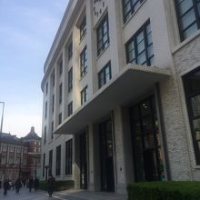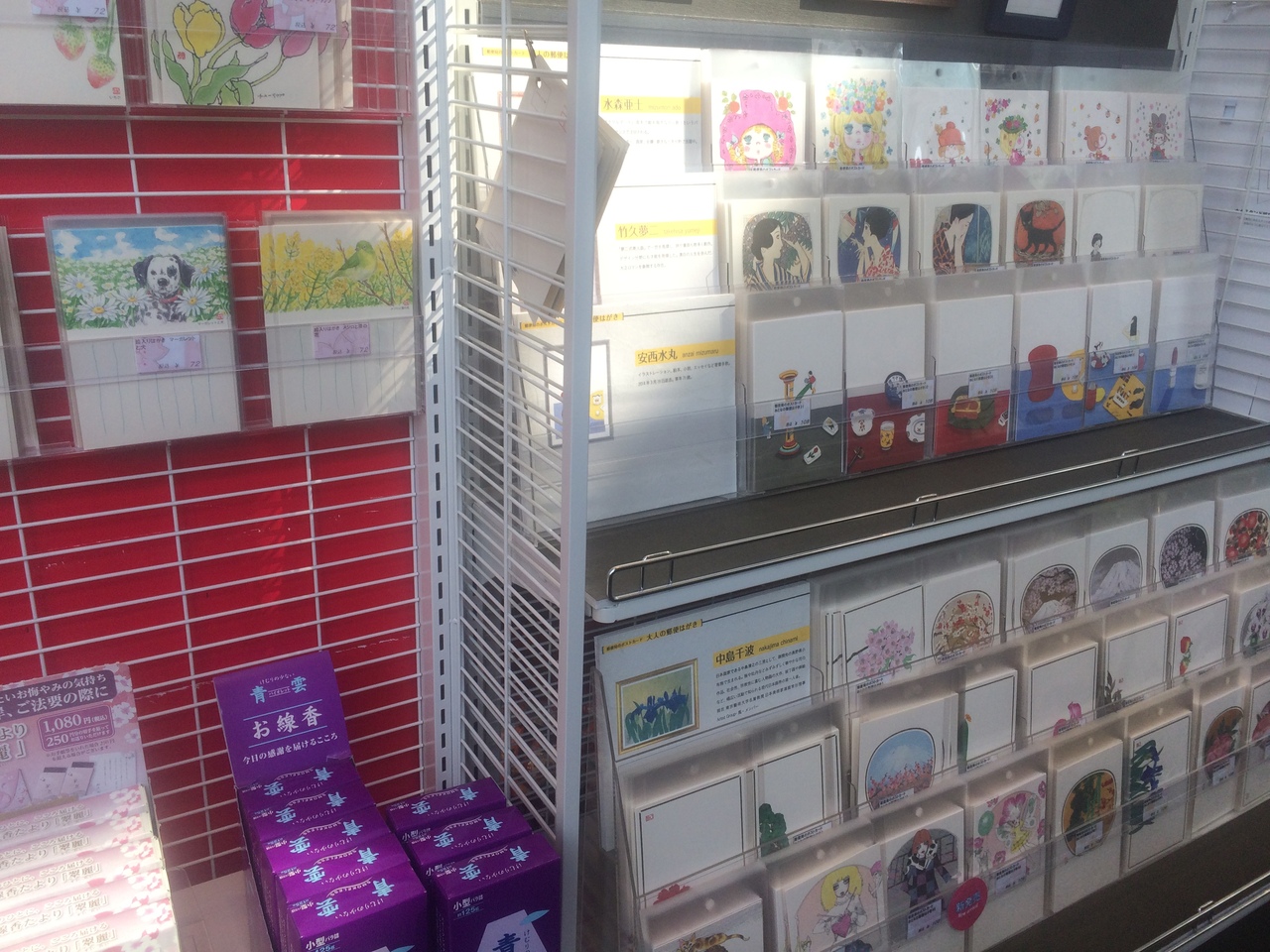 近代的な大きなビルの1階にありましたが店内は昔からの店構えのような感じでした。物凄い広さかと思ったらそうでもなく、地方の中央郵便局並の広さでした。ハガキ、封筒、線香まで売っていました。ゆうちょ銀行本店も隣接しています。