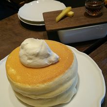 パンケーキにはバター、あんこ、メイプルシロップと口直しのチーズが付いています。