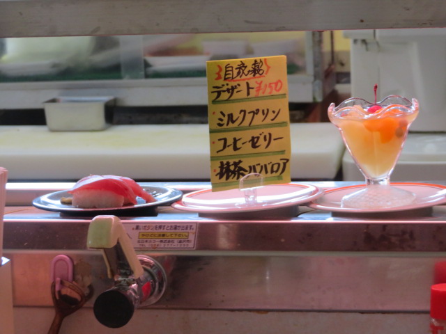いわゆる100円の回転ずしですがチェーン店ではありません、日立十王の国道6号線小貝浜入口交差点そばにありました、13時頃行きましたがほぼ満席でした、地元の年配者もグループで来ていましたので固定客も多いようです、他の回転ずし店と同じようにとお皿の色によって値段が違いますが100円の物は結構多いです、うどん・そば、デザートも多くありました。
