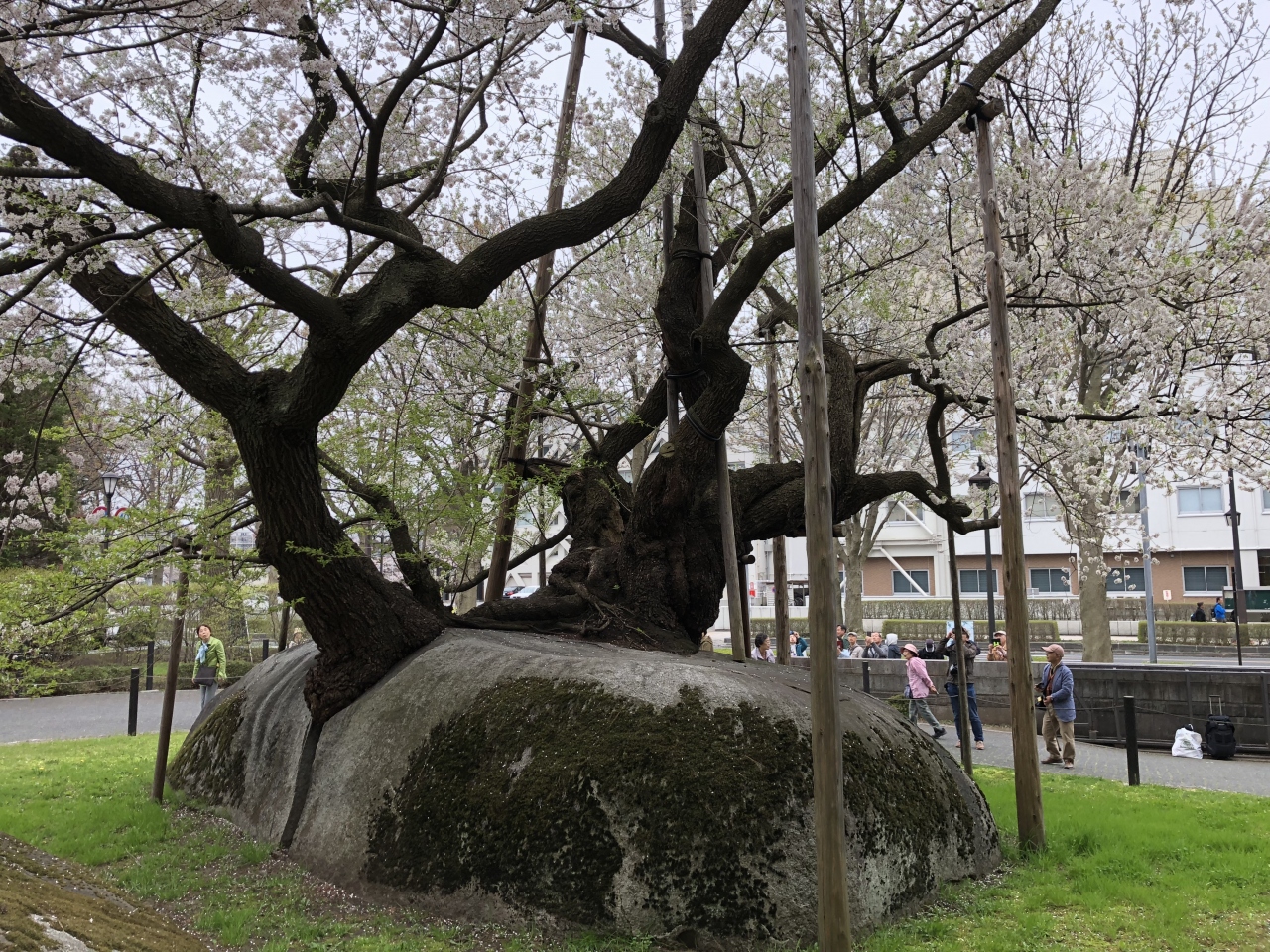 桜が咲いていなくても 大きな岩の間から桜が育ってこんなに大きくなるなんて