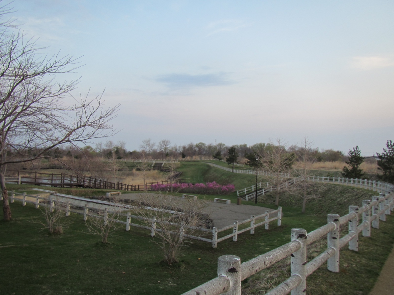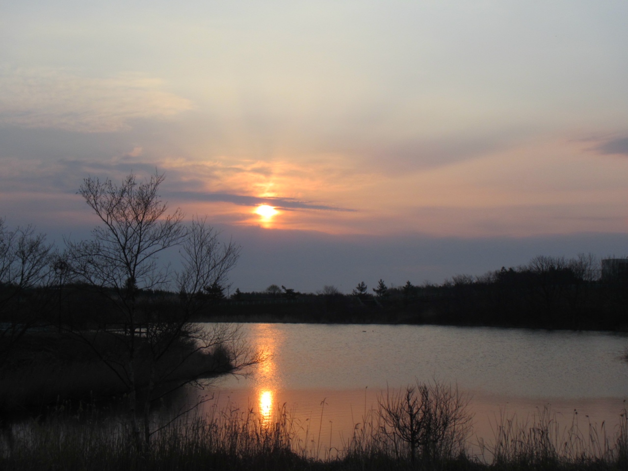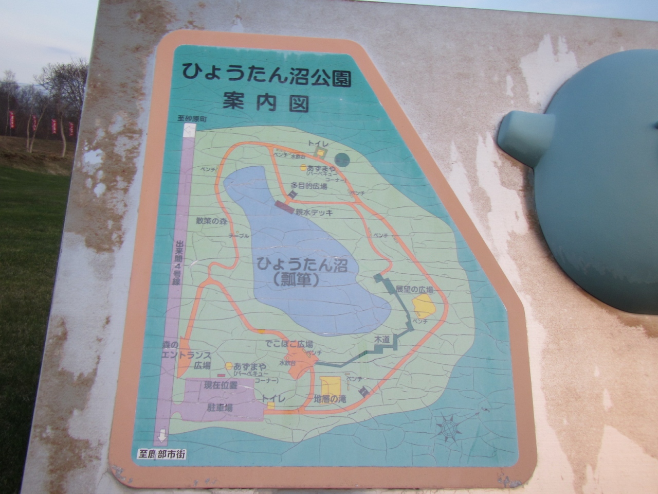 少々、窪地の公園で、中央がひょうたん型の池となっています。