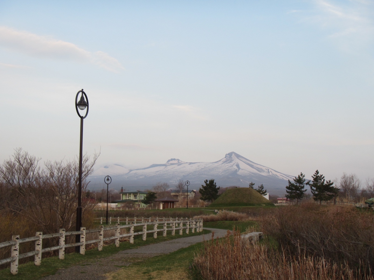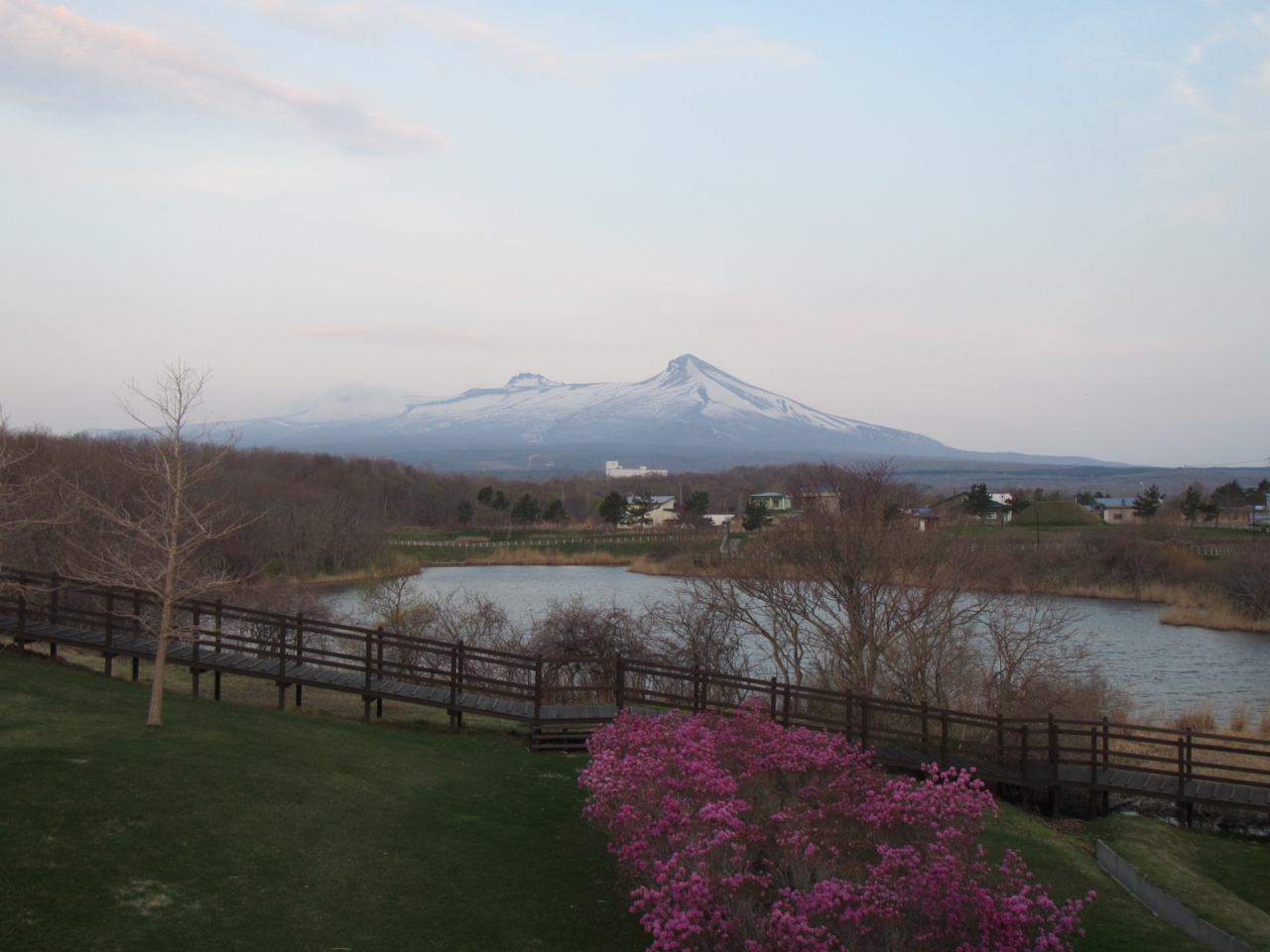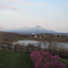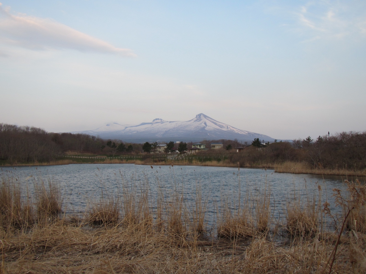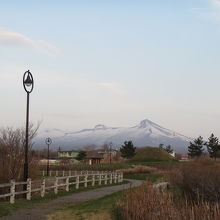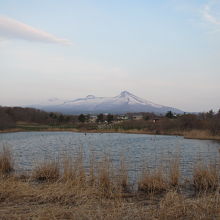 夕方も晴れていれば、きれいに裾を引いたシルエットが美しい山です。