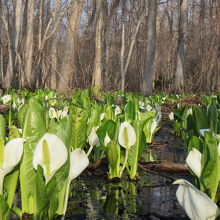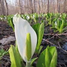 駅裏にミズバショウの群生地(4月20日前後見頃)