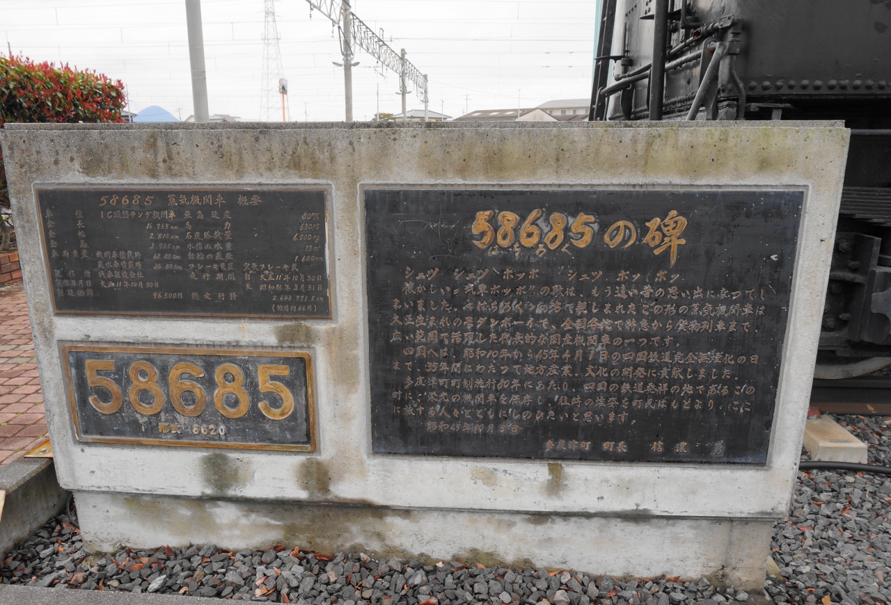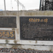 横には「58685の碑」として、概要が刻まれレプリカナンバープレートがあります。