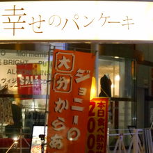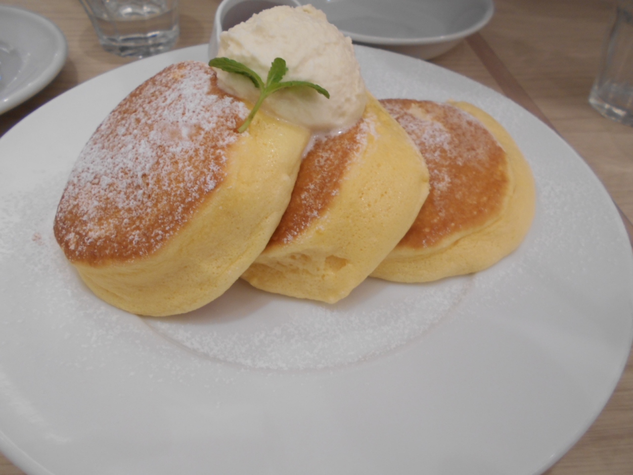 アメリカ村にもお店があります。45分待ちと表示されていましたがたまたま席があいていて、すぐ入店できました。地下にお店があります。明るく清潔なお店です。パンケーキのプレーンとドリンクのセットを注文しました。パンケーキはふわふわとけるようなかんじで、あっというまに食べてしまいました。