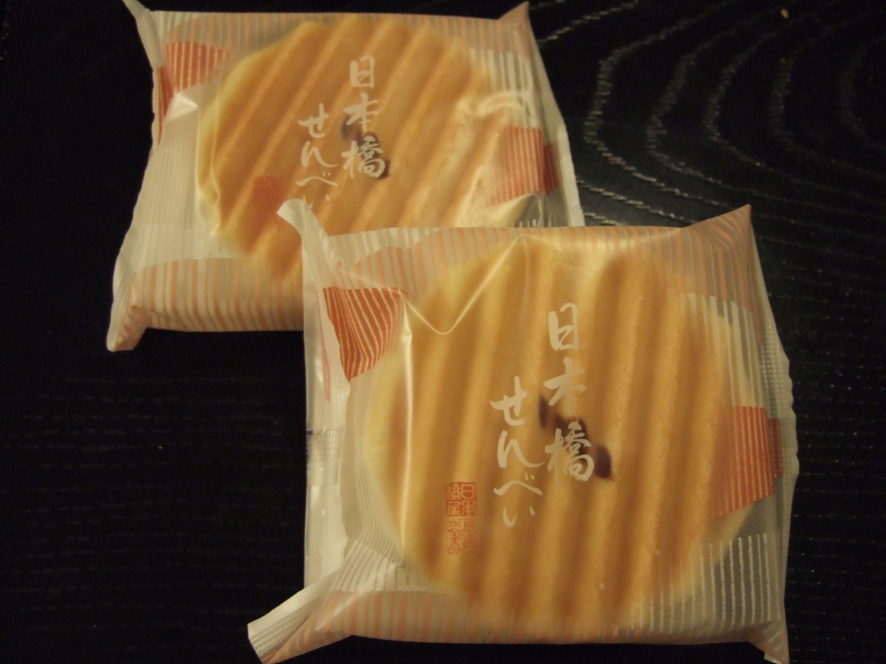 ミニ鯛焼き風の「天下鯛へい」など、いろいろなお菓子を売っていますが、日本橋せんべいを買ってみました。