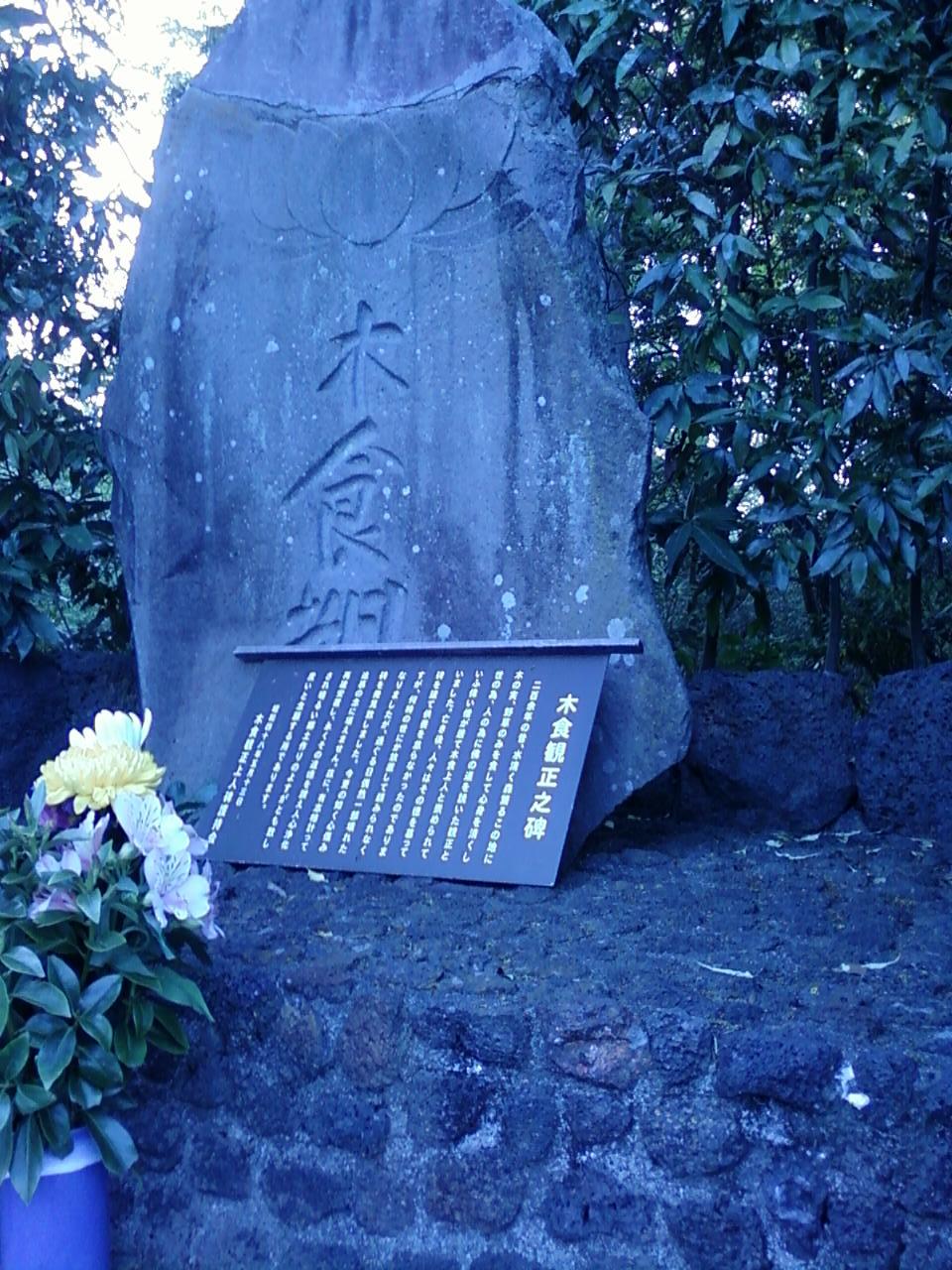 木食観正之碑は、JR三島駅から七分、蓮沼川に向かう途中、小浜のみちの道沿いにありました。200年ほど前、木の実や野草だけを食べて心身を清くし、自らをもって仏の道を説いた僧侶、観正を祀った碑です。蓮沼川に向かう右手にありますが、ちょっと見落としがちなので良く見てください。この地域の歴史を感じるひとつの印です。