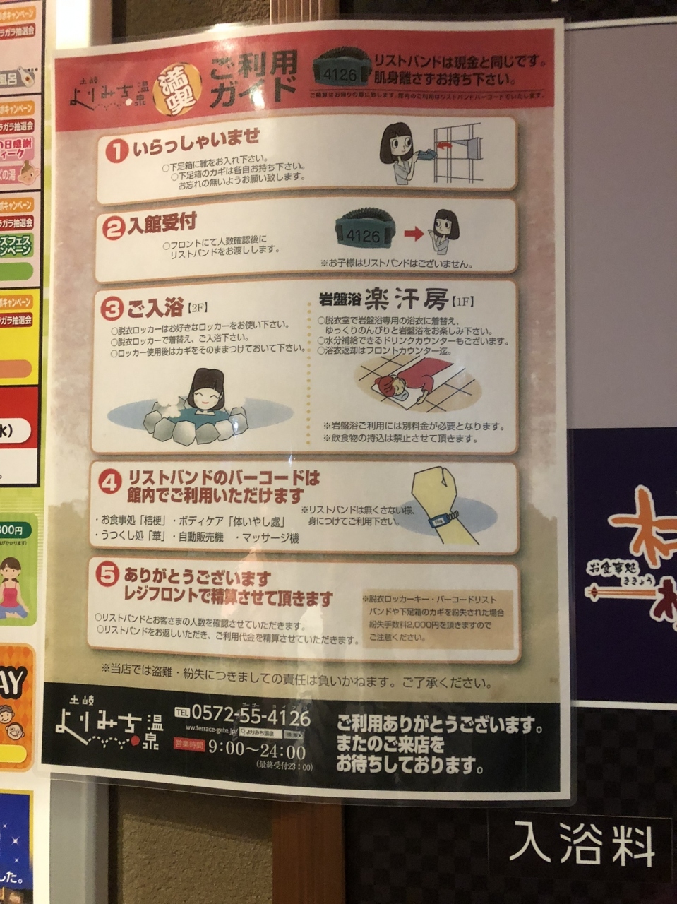 今回は平日20時以降、入浴と岩盤で1000円というプランを利用しました。レンタルタオルも無料で貸し出してもらえました。