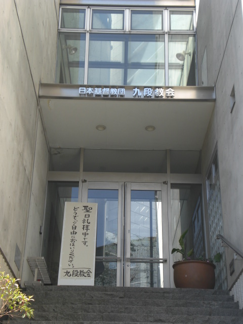 九段教会への入口は、階段になっていますので、手すりを利用することになるでしょう。日曜日の午前中は、教会が開かれていない場合がありますので、事前に調べたうえで、訪問されると良いと思います。