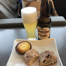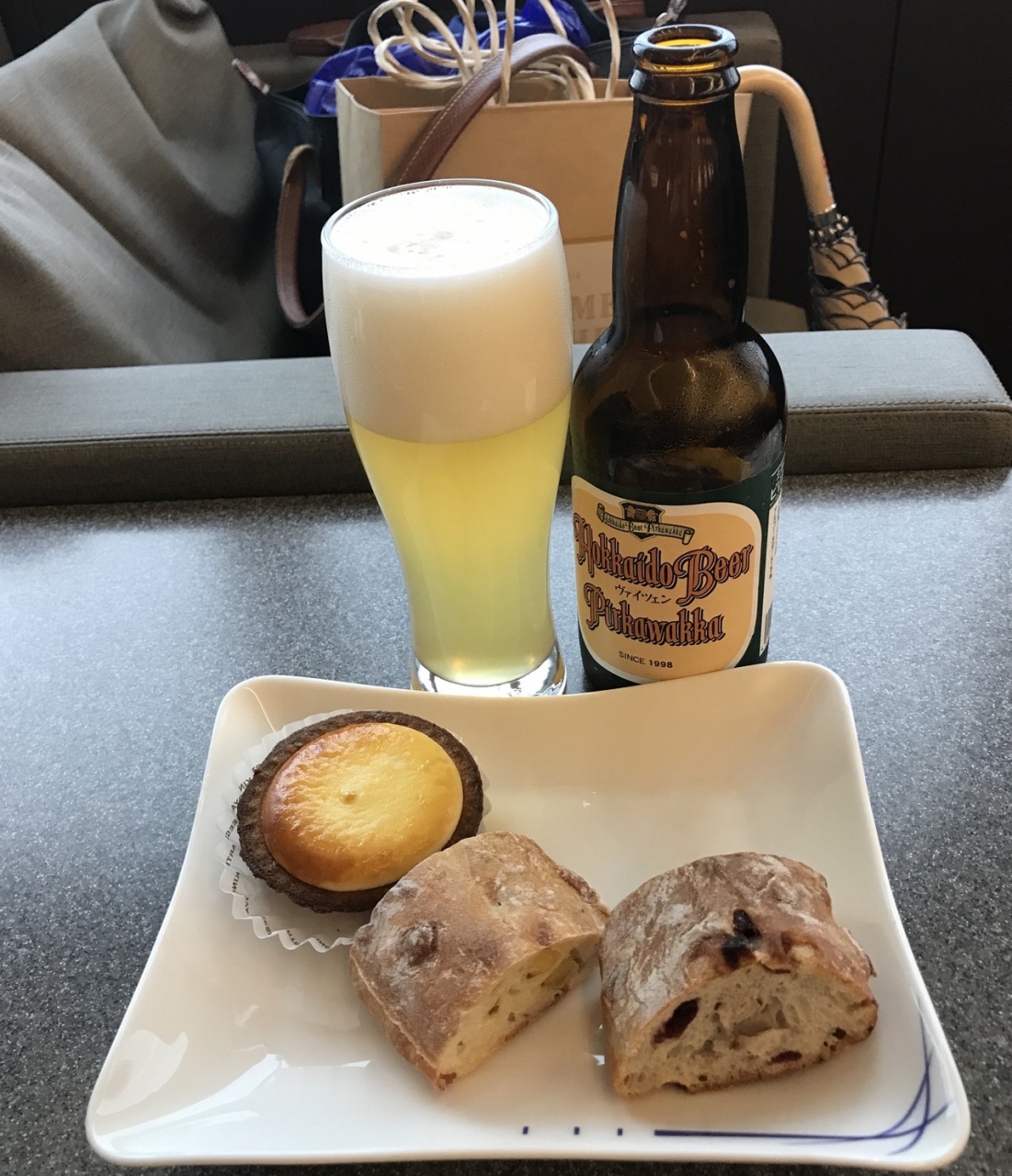こちらは16時からピリカワッカという地ビール、お昼から4回ほど提供のきのとやのチーズタルト、YOSHIMI監修のパン、北海道米のおにぎりがあります。