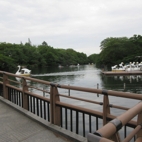 遠目にはスワンボートと池、橋の風情が綺麗ですが、残念な事に池の水がよどんでいて、綺麗ではありません。先に井の頭自然文化園で水生動物の在来種、外来種について学習してたので、池の中は外来種で脅かされてほしくないなと思いました。