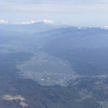 秋田空港から伊丹空港に飛ぶ途中で、左側の窓から諏訪湖や日本アルプスと共に見ることができました。