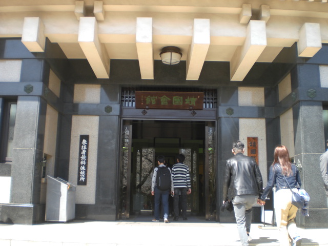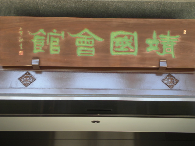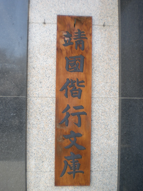 参拝者無料休憩所の標識のある休憩所は、休憩所と言うよりも、資料館としての価値が高く、格調の高い掛け軸等が展示されているとともに、偕行社文庫等もあり、永い伝統を感じさせるなかなか立派な施設です。