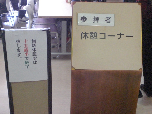 参拝者無料休憩所の標識のある休憩所は、格調が高い感じのせいか、比較的余席がありました。