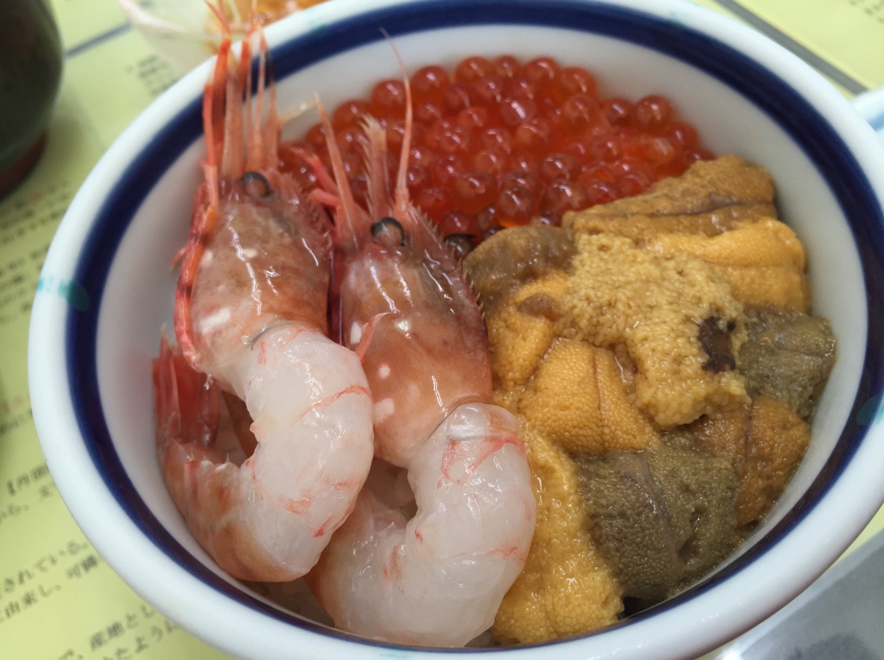 メニューはたくさんで迷いましたが、色々組み合わせできる3色丼!エビウニイクラ!