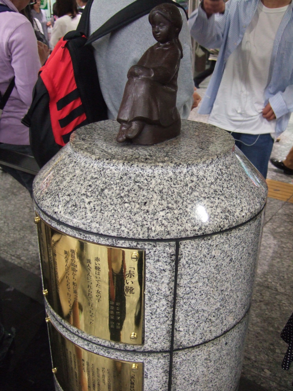 どの時間でも通路を歩いている人が多く、待ち合わせ場所にしては、かなり近寄らないと見えないほど小さい像です。