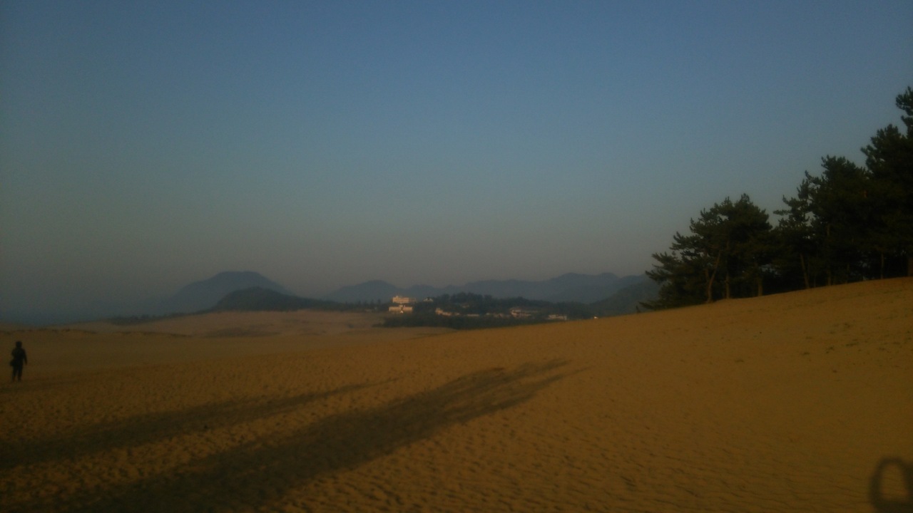 夕方でしたが、歩いてみました。思ったよりもさらさらでした。砂丘ではセグウェイに乗るイベントが開かれてました。なんとも幻想的な雰囲気でした。途中、自転車道も整備されていました。家族連れの姿が目立ちました。