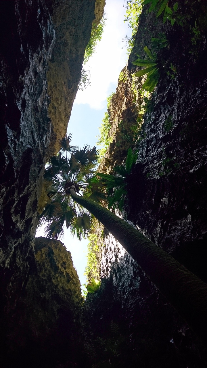 その中にヤシの木が生えていて、裂け目から天に向かって伸びている姿がとても生命力を感じます。