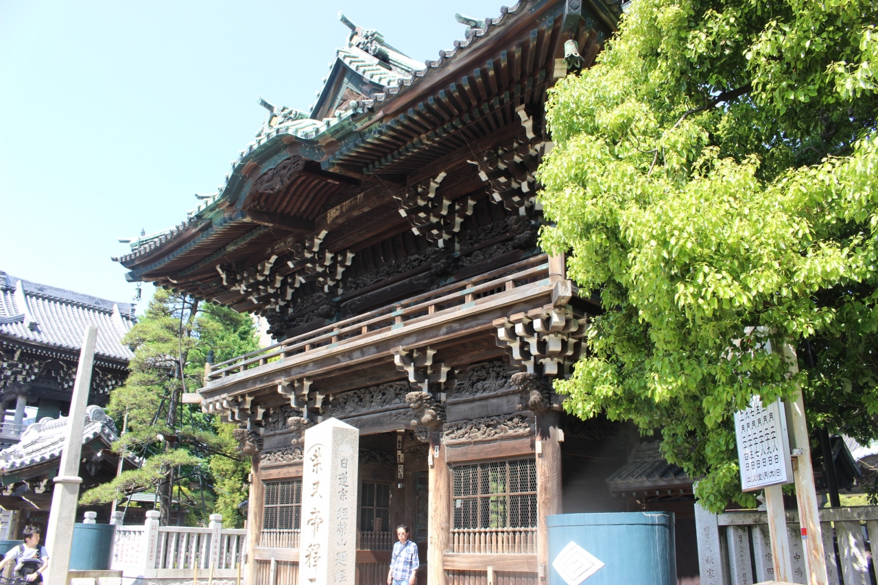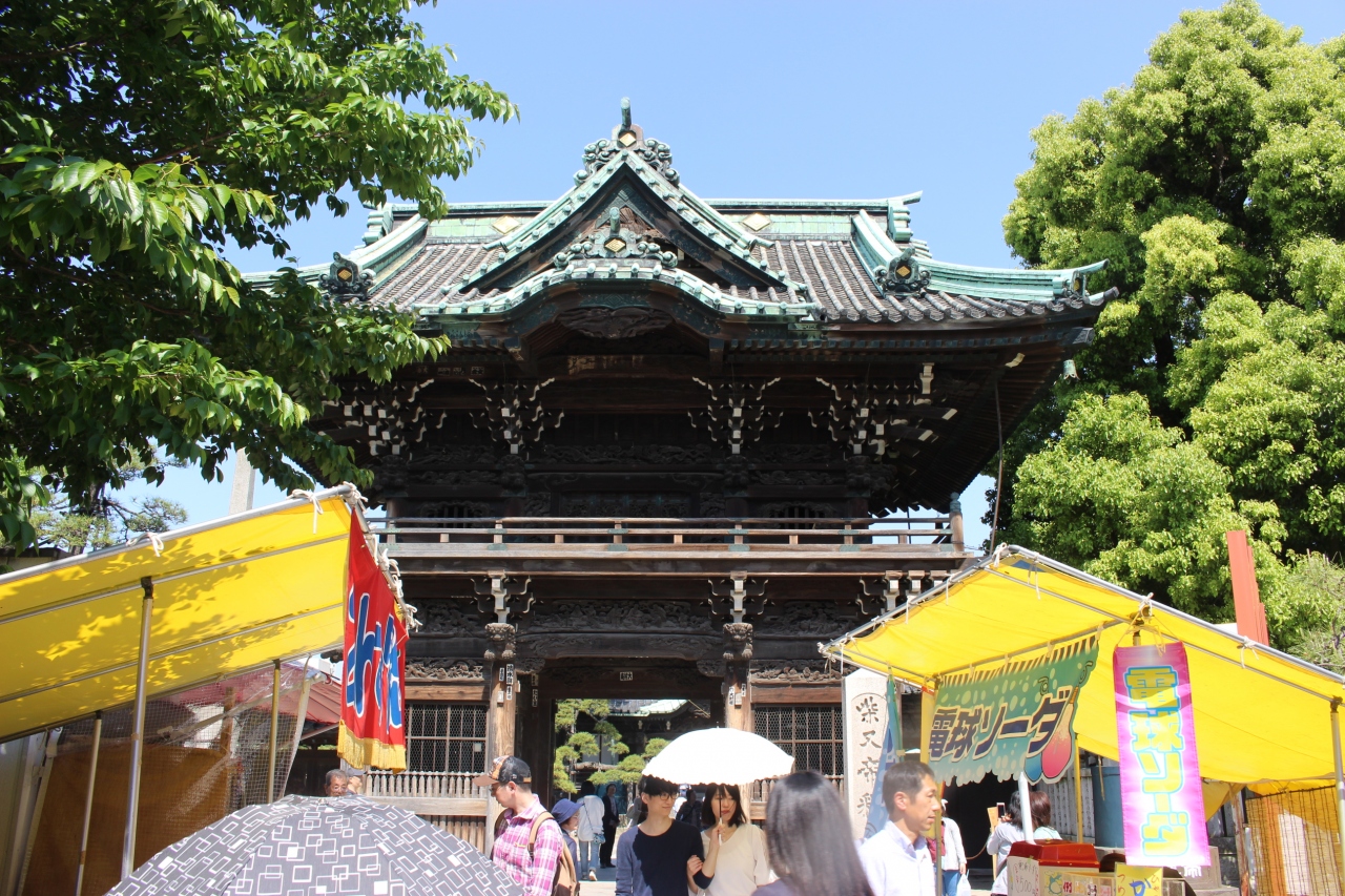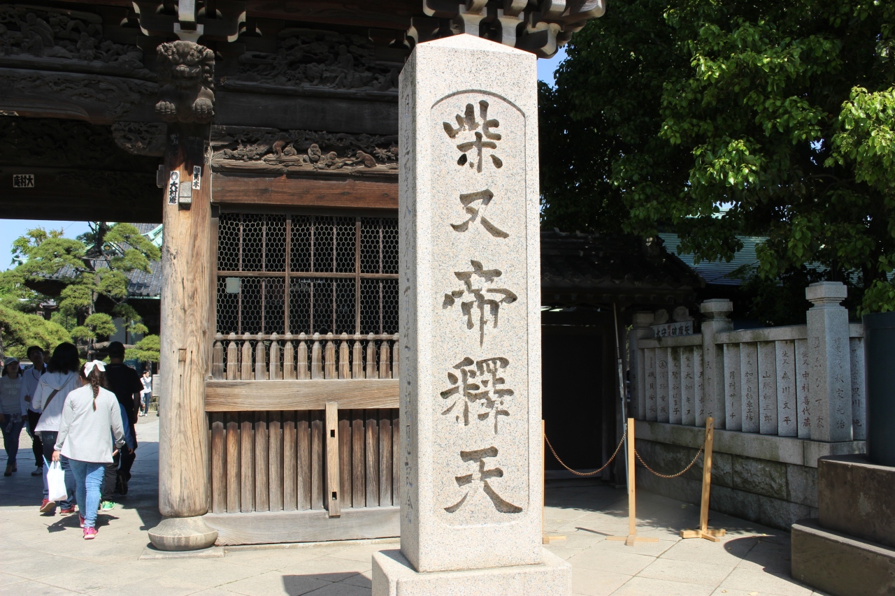 京成電車柴又駅を降りて、風情のある食べ物屋でにぎわう柴又帝釈天参道を10分ほど歩いていくと、この山門が見えてきます。