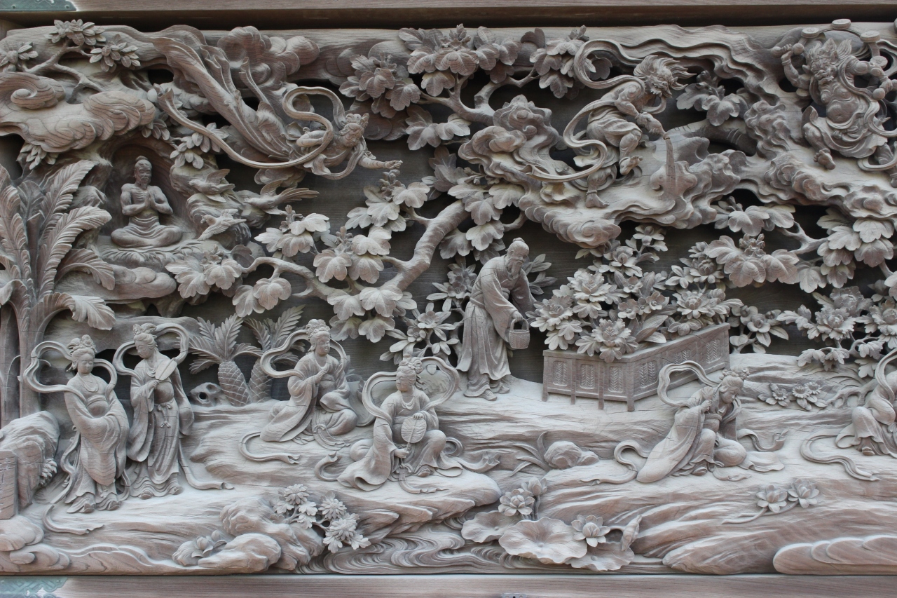 この帝釈堂の壁面を飾る浮彫の彫刻が素晴らしい。