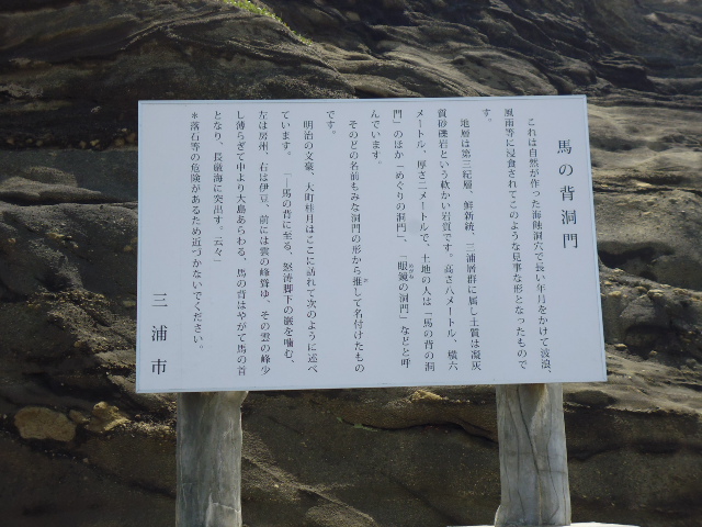 城ケ島公園の南側にある奇岩がここです。公園内の看板に沿って島の南側に降りていくと海岸に海水に洗われた奇岩が見えます。