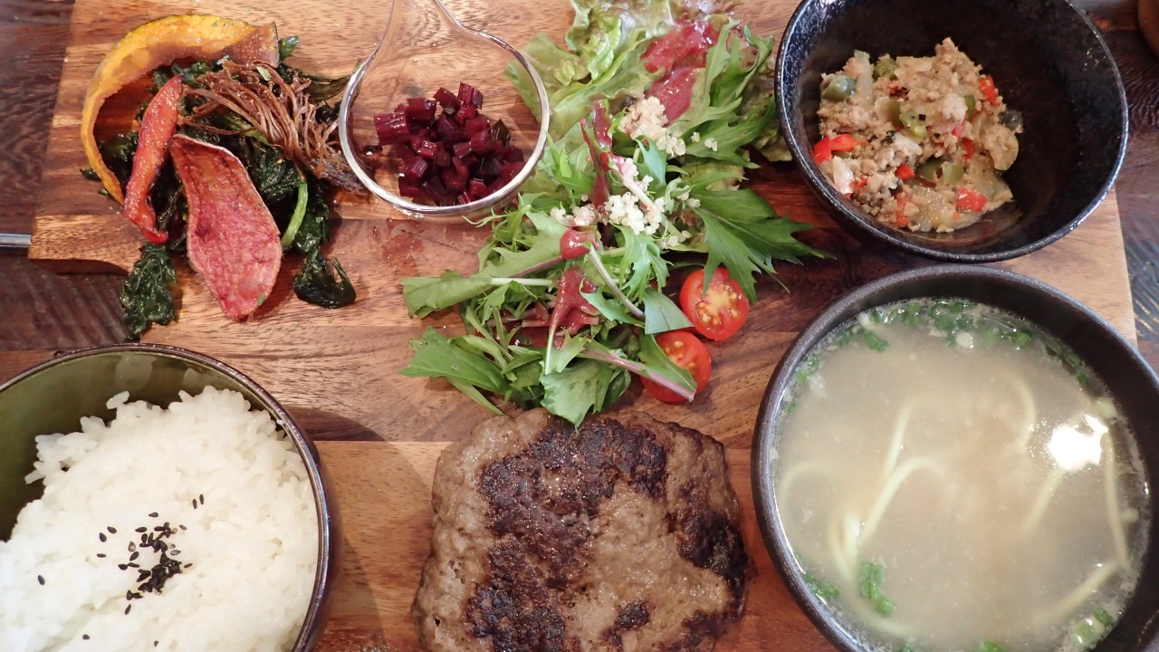 お店はご夫婦でされているようで、いただいたワンプレートのハンバーグ定食は全て手作り、何より化学調味料を使っていないのが分かる優しい味(石垣空港のやいまそばとは好対照(笑))でとても良かった。