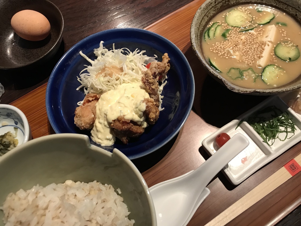 ランチで行きました。和食のお店です。ちょっとお値段はるけど、品数も多くて美味しいです。卵かけご飯が食べられます。プラスの料金で、お味噌汁を豚汁に変更できます。12時前に行っても混むので、11時半には入店した方が良さげ。