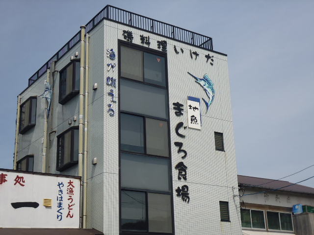 京急バス城ケ島の終点バス停の目の前にある大きなビルのあるレストランがここです。上階にも席があるので人数が多くても大丈夫ですが、最近の島は景気が悪そうで、他の店は閉まっているところが多いです。