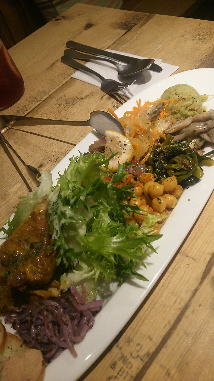 前菜、バーニャカウダ、パスタ、メイン料理、パンケーキがセットになったものをオーダー。CPがすごくよかったです。