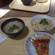 写真の炊き込みご飯+だご汁+ピザは、合計500円でした。