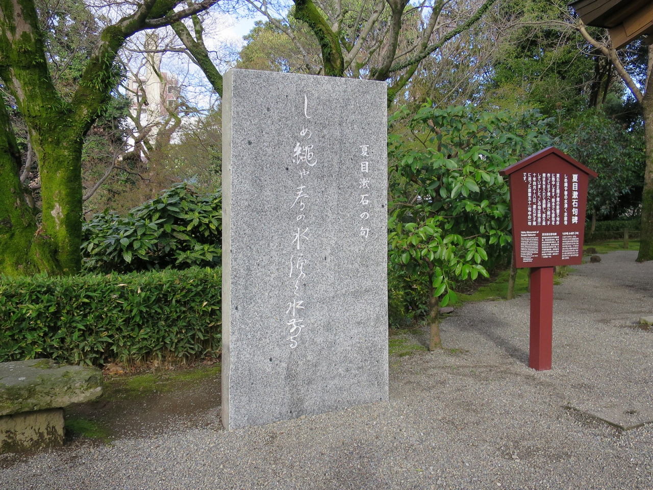 - 昭和天皇御手播きの松、夏目漱石句碑、宗不旱の歌碑、五葉の松といった見所があります