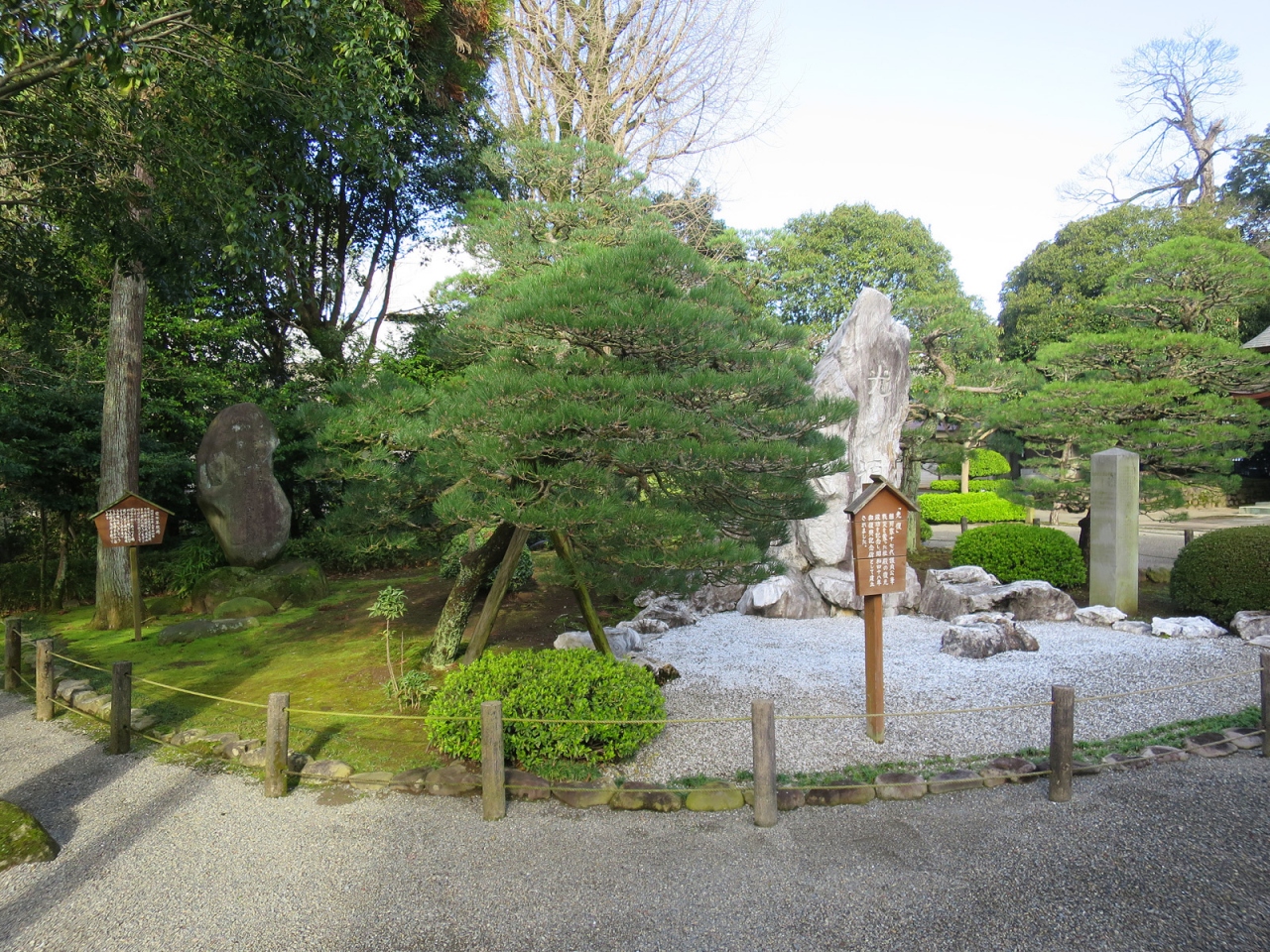 「水前寺成趣園」内に建立された「出水神社」です。加藤家に代わって熊本藩主となったのは細川家ですが、その歴代藩主を御祭神として明治11年に建てられた神社とのことです。ただ最初に祀られたのは細川藤孝公、細川忠興公、細川忠利公、細川重賢公の4柱で、他の歴代藩主10柱と細川ガラシャは後に合祀されたとのこと。そのヒエラルキーの価値判断は御家臣団の見解なのでしょうね。戦災で社殿の多くを失い、現在の社殿は昭和48年に再興されたものということでしたが、非常に上品な雰囲気を感じさせる社殿だと思います。境内には昭和6年の大演習時に昭和天皇が御手播きした松、小泉八雲(ラフカディオ=ハーン)の後釜として第五高等学校に赴任した夏目漱石の句碑、五葉の松といった見所の多い神社です。