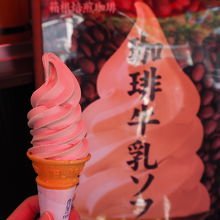 箱根湯本の商店街のアーケードを歩いていると、ソフトクリームを手にしている人がちらほらいます。