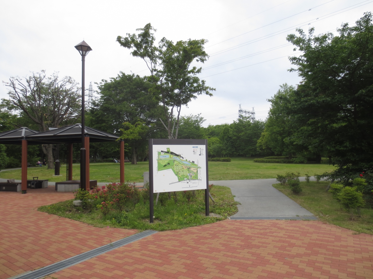 野川公園の更に先にある都立の公園です。入口は東八道路から。奥にはべーべキュー場や野球場などがあります。野川公園にはかないませんが、ここも随分と広い公園です。手前の東広場には、屋根付きのベンチが設置されていて、そこで一息ついてました。この広場は芝生がきれいに整備されていて、環境的にも落ち着けました。