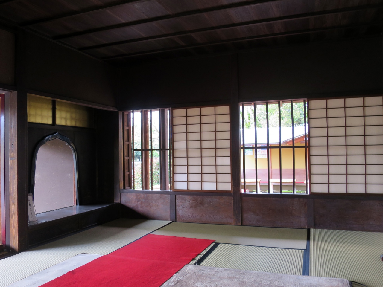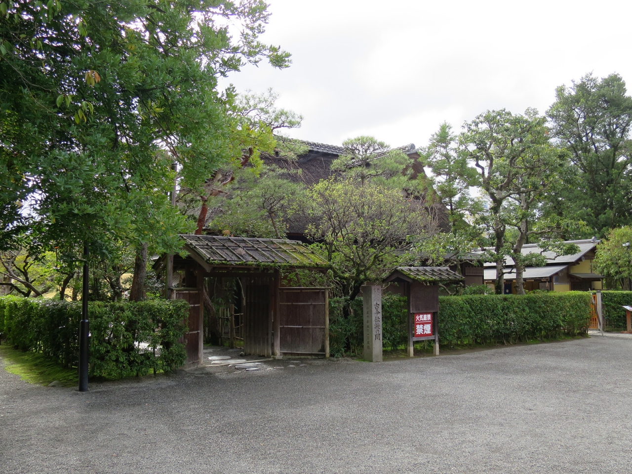 この「古今伝授之間」は、約400年前に京都御所の中に建てられた建物で、後陽成天皇の皇弟八条宮智仁親王の書院兼茶室で、細川家初代の藤孝公が武家の身分でありながら、古今和歌集の奥義を親王に口述伝授したという由緒ある建物です。古今伝授が行われた建物としては唯一現存するものというのも希少価値が高いですね。そんな建物は、紆余曲折を経て、この「水前寺成趣園」に移築されたようです。熊本県指定重要文化財に登録されている由緒ある建物に腰を落ち着け、美しい庭園を真正面から眺めつつお茶と菓子をいただくためには650円の初期投資が必要となりますが、あっという間に回収できたと思います(笑)。非日常ここに極まれり。