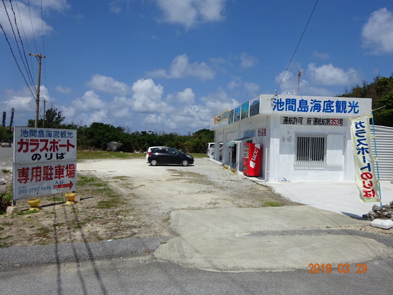 宮古島の北西の方角に、池間島があります。この池間島に渡る池間大橋を渡ってしばらく走ると、左側にこの建物が見えてきます。