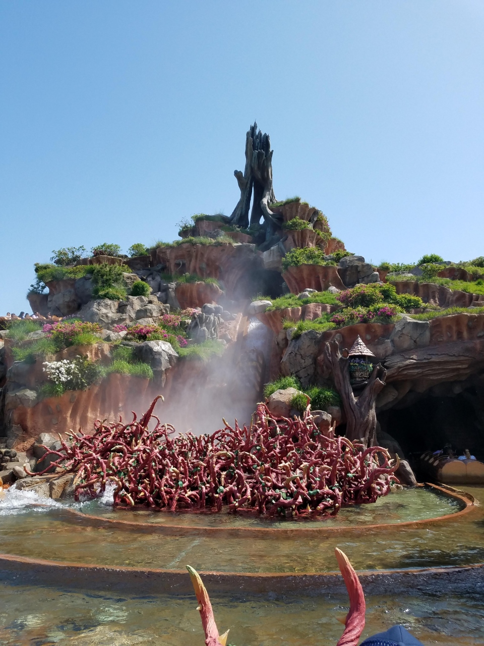スプラッシュマウンテンは、ランドの一番奥クリッターカントリーにある人気アトラクションです。クライマックスは最後の降下で水しぶきがかかるところですが、コースターで水路を巡っている時間も長く面白かったです。休日日中のスタンバイ140分のところ、実際にはそれ以上時間がかかり、家族皆で疲れていましたが、終わって見たら水しぶきで濡れた顔を見合せて笑って大満足でした。