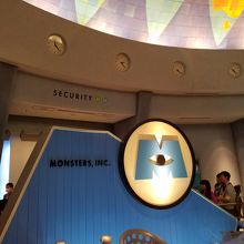 モンスターズインクは、ワールドバザールからすぐ出たトゥモローランド内にある人気アトラクションです。入場してファストパスの列に並んで何とか午後チケットをとれました。キャビンに乗って次々と現れるモンスターのMマークのヘルメットを灯りで照らして、夢中になりました。モンスターズインク好きの娘にキャラクターを教えてもらいながら楽しみます。