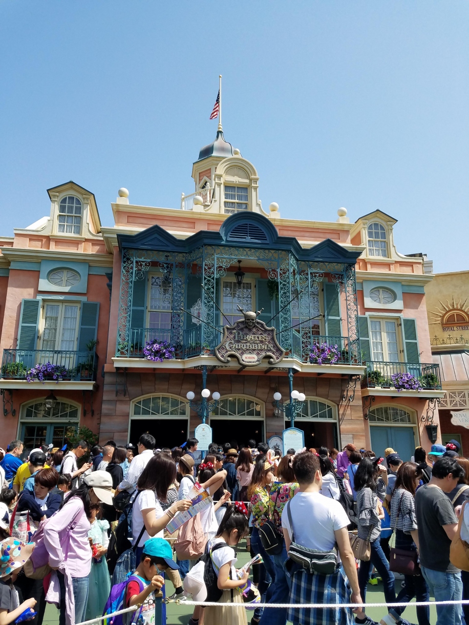 カリブの海賊は、ワールドバザール近くのアドベンチャーランドにある開業から続く人気アトラクションです。久々の体験でしたが、大きなボートに乗って海賊の世界を旅する基本スタイルは変わりませんが、リアルなジャックスパロウの姿はインパクトがあり、子供たちにも馴染みのキャラで盛り上がりました。