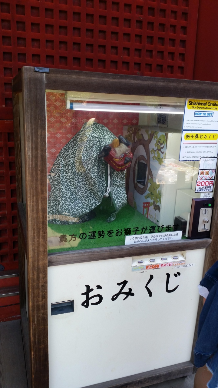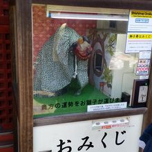 獅子舞のからくり仕掛けのおみくじの機械があって、