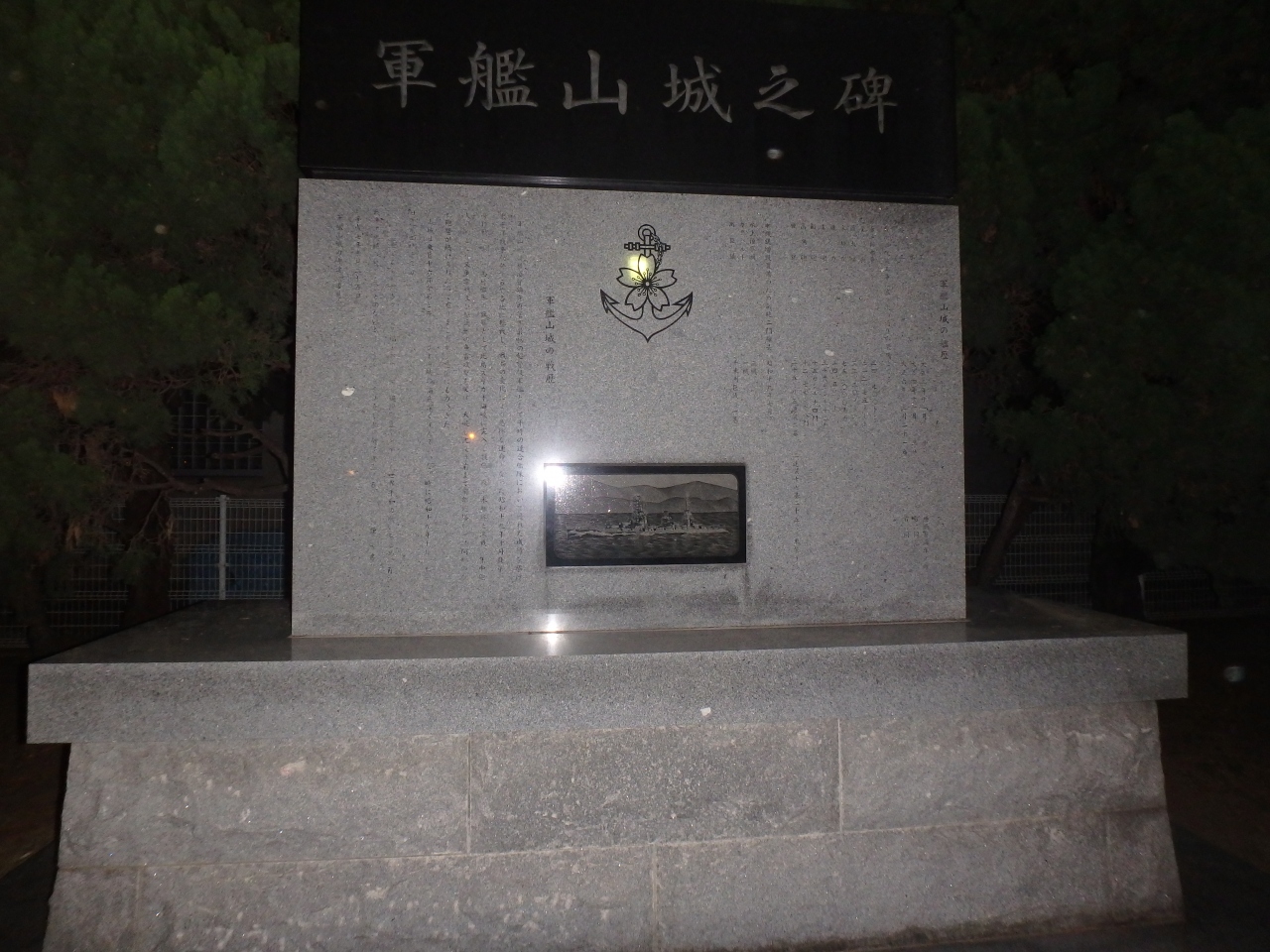 軍艦山城は大正時代であった1910年代に横須賀で造られ、第二次世界大戦中の1944年にフィリピン沖でアメリカ軍との戦闘で沈没しました。軍艦山城は沈没した際に1624人と一緒に海底に沈んでいったので、慰霊するためにこの石碑が1995年に出来たそうです。戦争による犠牲を今に伝える慰霊碑です。