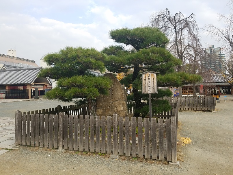 四天王寺に石鳥居から入って西大門をくぐった左手にある松です。