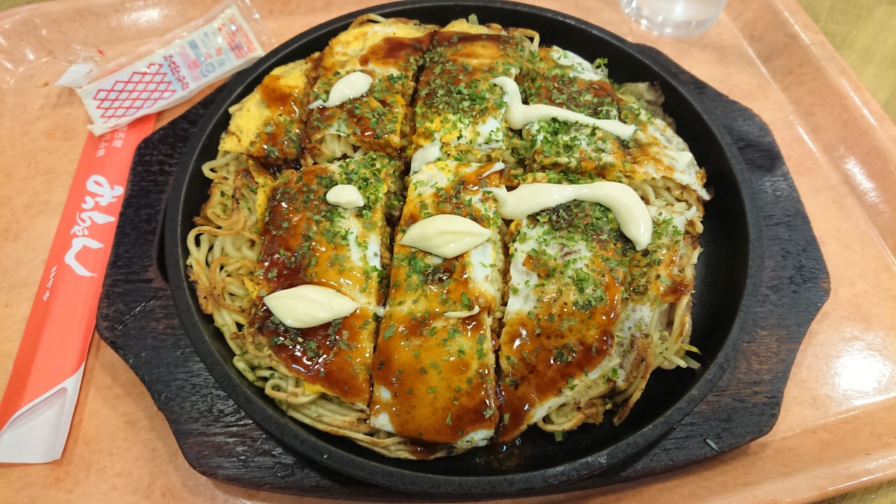 飛行機が遅れていたので、ゆっくりお好み焼きを食べることにしました。