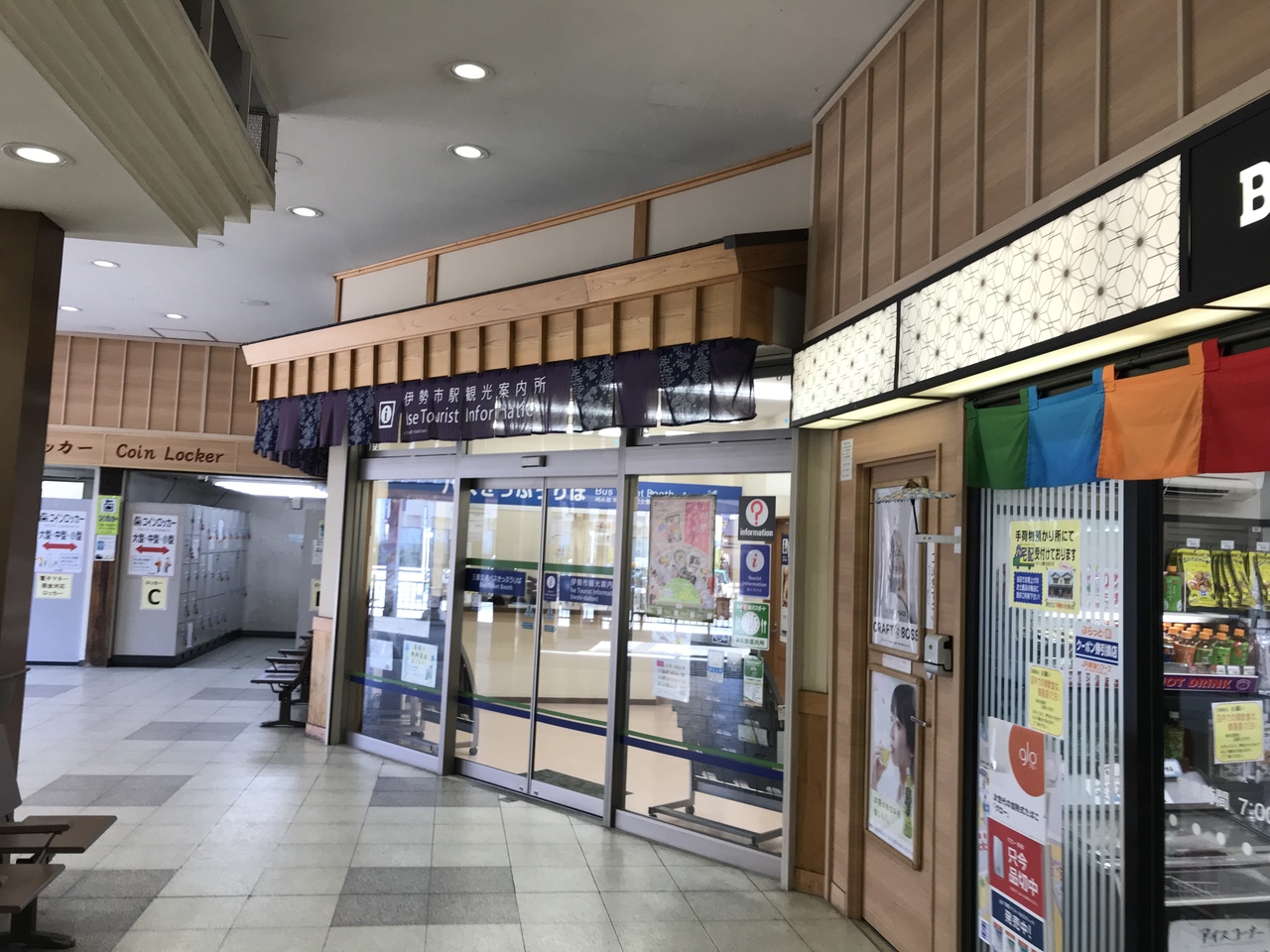 JR伊勢市駅の改札口を右手に出て、駅舎内コンビニの横に伊勢市観光案内所があった。