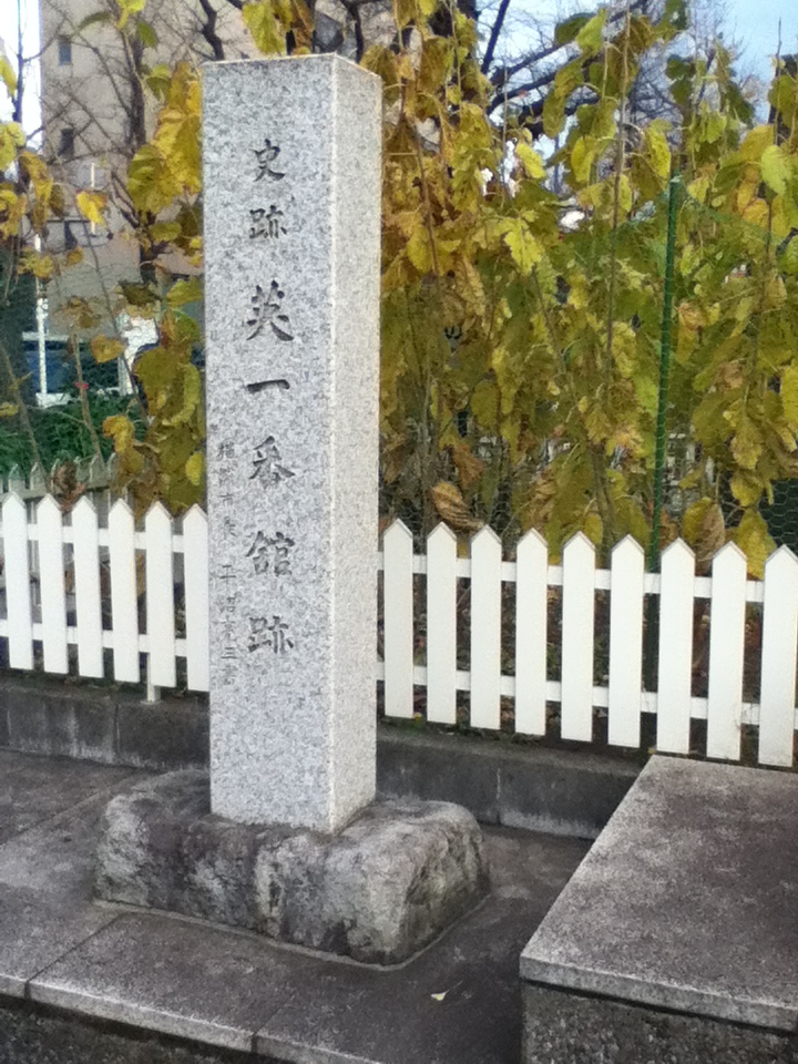 日本大通り駅北東のシルクセンター前にこの石碑がある。週末午後、前の歩道には多くの人が行き来していたが、この石碑を見ている人は他にいなかった。お勧めの点は、安政6年横浜が開港したと同時に、イギリス人ウイリァム・ケスウィックが帆船で横浜に来航し、石碑があるこの場所に居留地一番館を建てて貿易を始めたこと、この建物についてジャーディン・マセソン商会と称したが、当時の人々は英一番館と呼んでいたこと、石碑にはその名称がくっきりと刻まれていること、このような経緯を聞きながらこのイギリス人が貿易商として活躍していた様子や周辺の街並みを楽しく想像できることである。